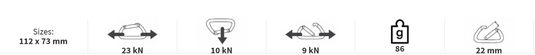 Mosquetón de aleación ligera forjado en caliente con forma ovalada, cierre de rosca y cargas de trabajo elevadas. Especialmente indicado para operaciones de recuperación y salvamento, alpinismo, e...